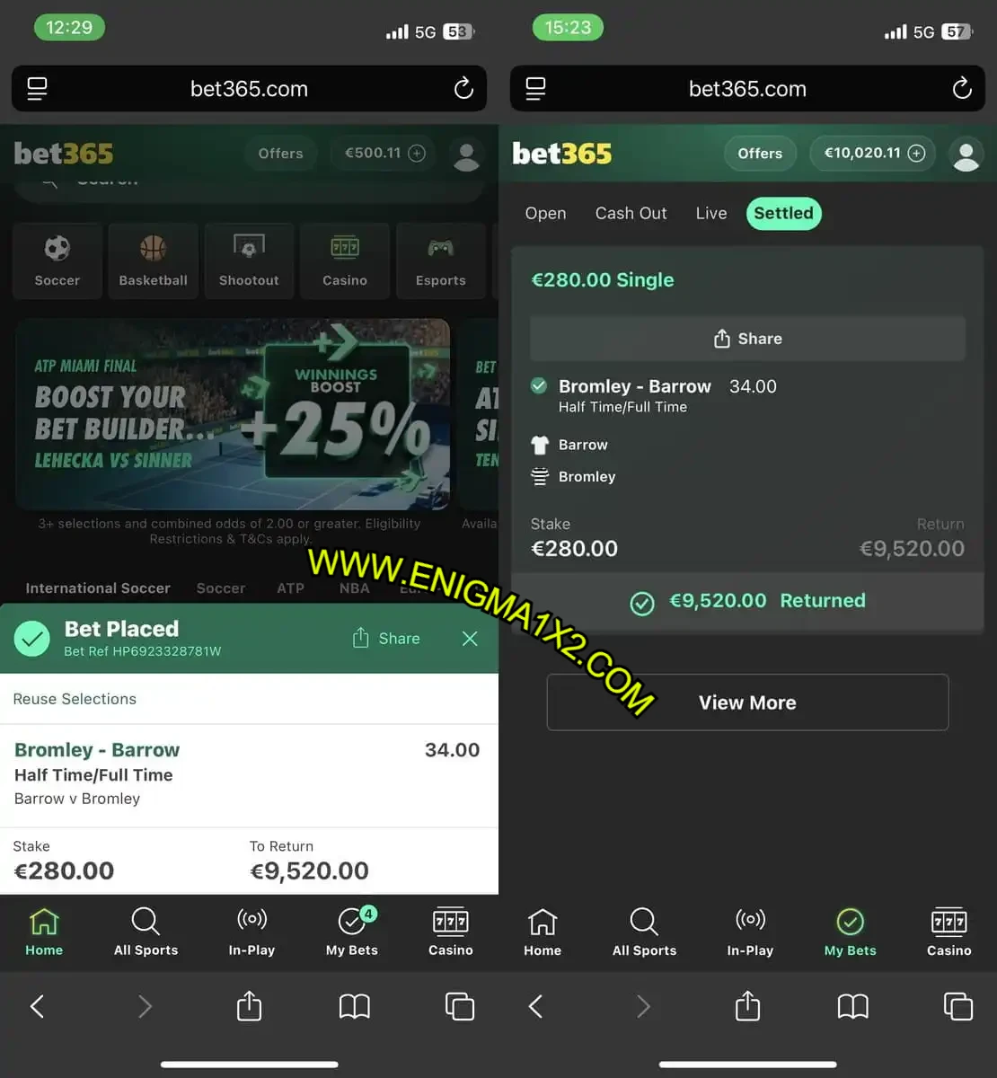 | Boreham Wood vs Boston Utd | 1/2 (HT/FT) | 41.00 | HT: 1:0 / FT: 1:2 WIN |