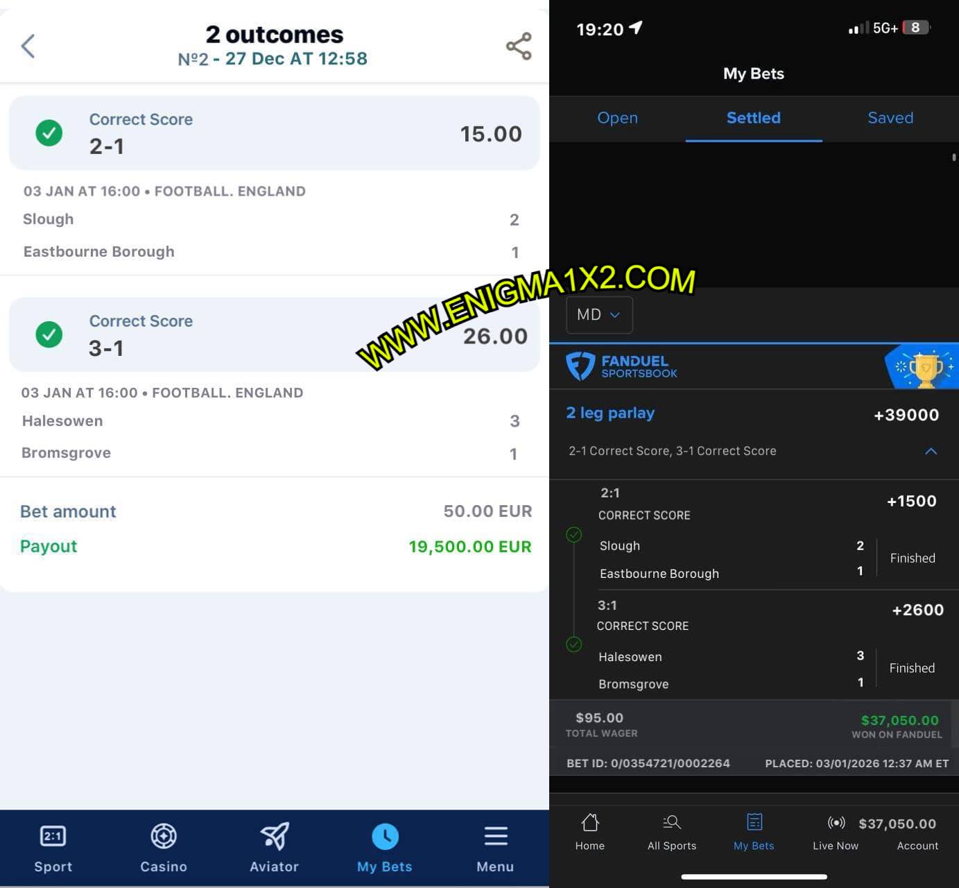 Firstly, At Enigma1x2.com, we also provide special access to fixed matches with extremely real odds for serious players. This premium offer is focused on Fixed Match Half Time/Full Time or CORRECT SCORE FIXED MATCHES.